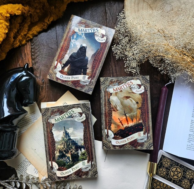 Ainsi, si j’avais été séduite par les deux premiers tomes, mais un peu freinée par l’aspect classique du premier et par le manque de dynamisme du deuxième, j’ai trouvé que la trilogie se révélait véritablement dans le dernier tome nous apportant toutes les révélations que l’on attendait et bien plus encore. Une fois arrivé au troisième tome, il est impressionnant de mesurer le chemin parcouru et l’évolution des personnages, dont l’un s’élève véritablement au rang de légende. Martyrs s’impose comme une fresque de fantasy politique et épique remarquablement construite et dotée d’une belle mythologie, qui prend le temps de développer ses personnages et qui s’impose comme une œuvre majeure dans le paysage de la fantasy francophone. Je suis ravie que l’auteur ait pris le temps de terminer cette saga, lui offrant un final à la hauteur de son ambition.
